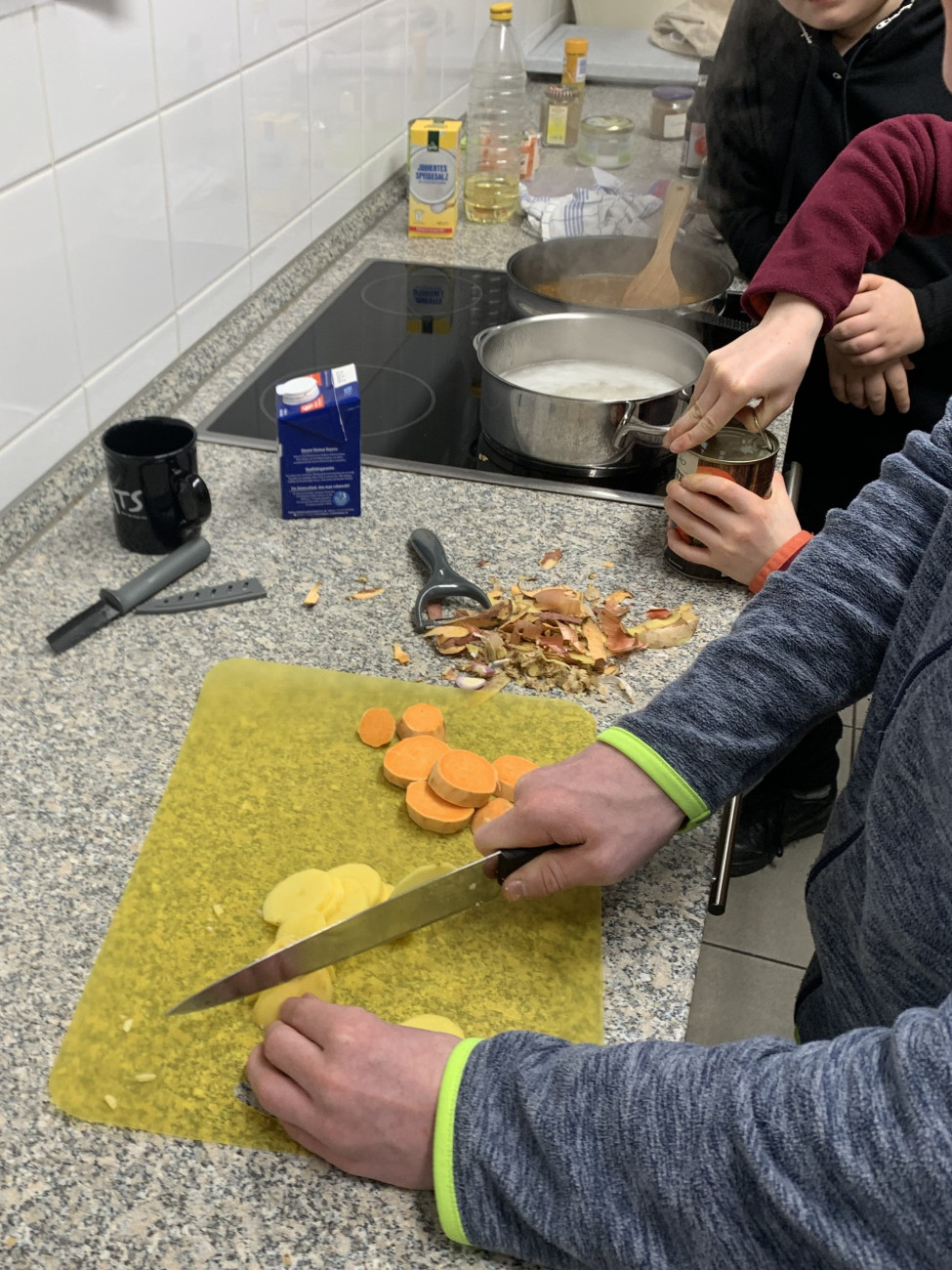 Wir treffen uns alle zwei Wochen mittwochs von 18 bis 20 Uhr im Gemeindehaus der Lätare-Kirche, um gemeinsam zu kochen, zu quatschen, zu essen und wenn noch Zeit bleibt, zu spielen.