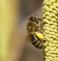 Und im Bienenstock hinter der Kirche sind wieder die Bienen unterwegs auf Futtersuche.